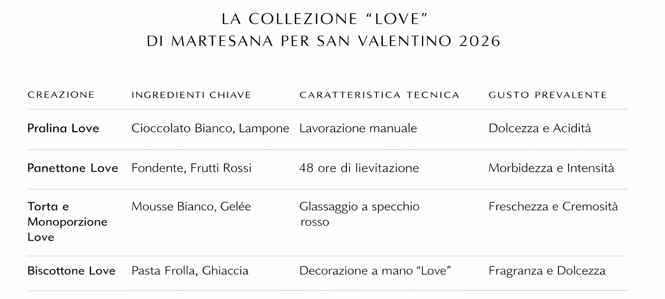 Tabella: La Collezione “Love” di Martesana per San Valentino 2026