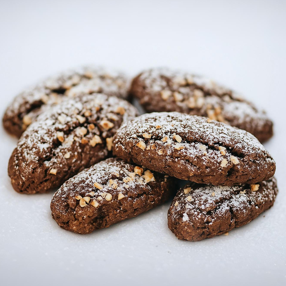 La loro consistenza soffice racchiude un equilibrio perfetto di nocciole tostate, uva sultanina, mandorle, pinoli, canditi di arancia e cedro e una nota di vino Marsala, per un gusto aromatico e avvolgente. Il tocco finale di zucchero a velo e granella di nocciole regala croccantezza e dolcezza in ogni morso.