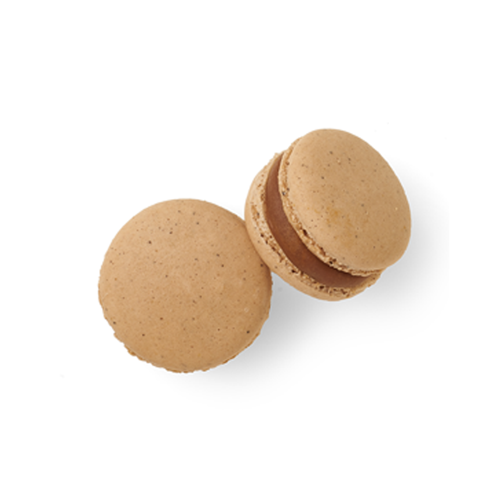 Ganache di farcitura 72% (panna pastorizzata (latte) 30%, cioccolato al latte 24% (40% minimo di cacao-ingredienti: burro di cacao, latte intero in polvere, zucchero, fave di cacao, zucchero di canna, estratto naturale di vaniglia, emulsionante: lecitina di girasole, estratto di malto d’orzo), cioccolato bianco (35% min di burro di cacao-zucchero, burro di cacao, latte intero in polvere, emulsionante: lecitina di girasole, estratto naturale di vaniglia), burro (latte) di provenienza: Paesi UE, caffè tostato, liquore al caffè (acqua, alcool, zucchero, infuso di caffè. Alcool: 25% vol, tenore alcolico complessivo della crema: <1%). Guscio (biscotto) 28% (zucchero, farina di mandorle 25%, albume d’uovo pastorizzato, acqua, estratto di caffè 0,6%, caffè macinato 0,4%).