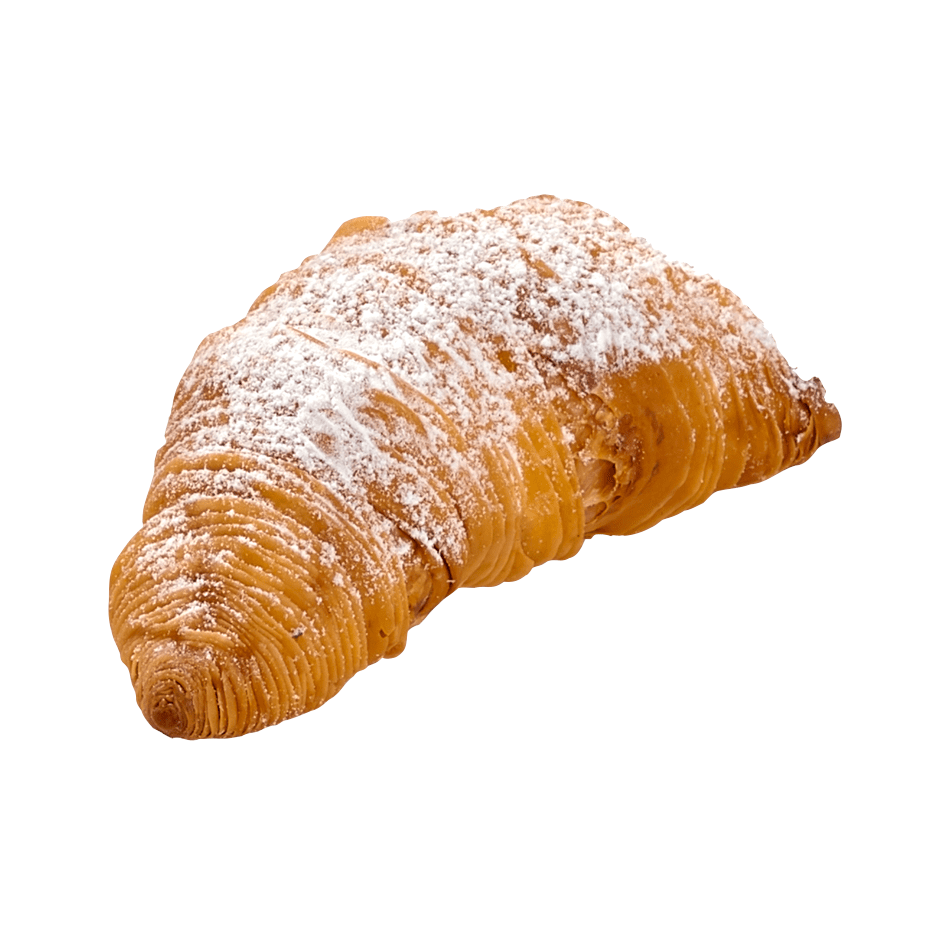 Pasta sfoglia (farina di grano tenero tipo”0”, acqua, zucchero, strutto (strutto raffinato, antiossidante: E320), sale. Ripieno (uova, acqua, farina di grano tenero tipo”00”, margarina vegetale (oli e grassi vegetali parzialmente idrogenati in proporzione variabile: palma e/o cocco e/o girasole e/o colza e/o mais e/o soia, sale, emulsionanti: E471, E322, conservante: E202, correttore di acidità E330, aromi), strutto (strutto raffinato, antiossidante: E320), sale, aromi). Farcitura con Crema Pasticcera 20% (latte intero fresco pastorizzato di provenienza: Italia, Tuorlo d’uovo pastorizzato da allevamenti a terra di provenienza: Italia, Zucchero, Amido di riso, Estratto naturale di limoni e vaniglia, scorze di limoni).