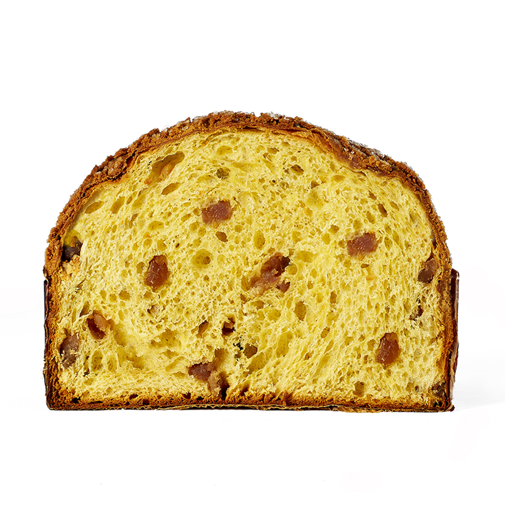 Farina di grano tenero tipo ”00”, Burro 19% (origine del latte: Paesi UE), Marron Glacés 17% (marroni, zucchero, sciroppo di glucosio-fruttosio, estratto naturale di vaniglia, conservante: anidride solforosa), Zucchero, Tuorlo d’uovo sgusciato pastorizzato da allevamenti a terra di origine: Italia, Acqua, Lievito naturale (contiene frumento), Miele di acacia (provenienza: Paesi UE o extra UE), Estratti naturali di limoni, arance e vaniglia, Sale.