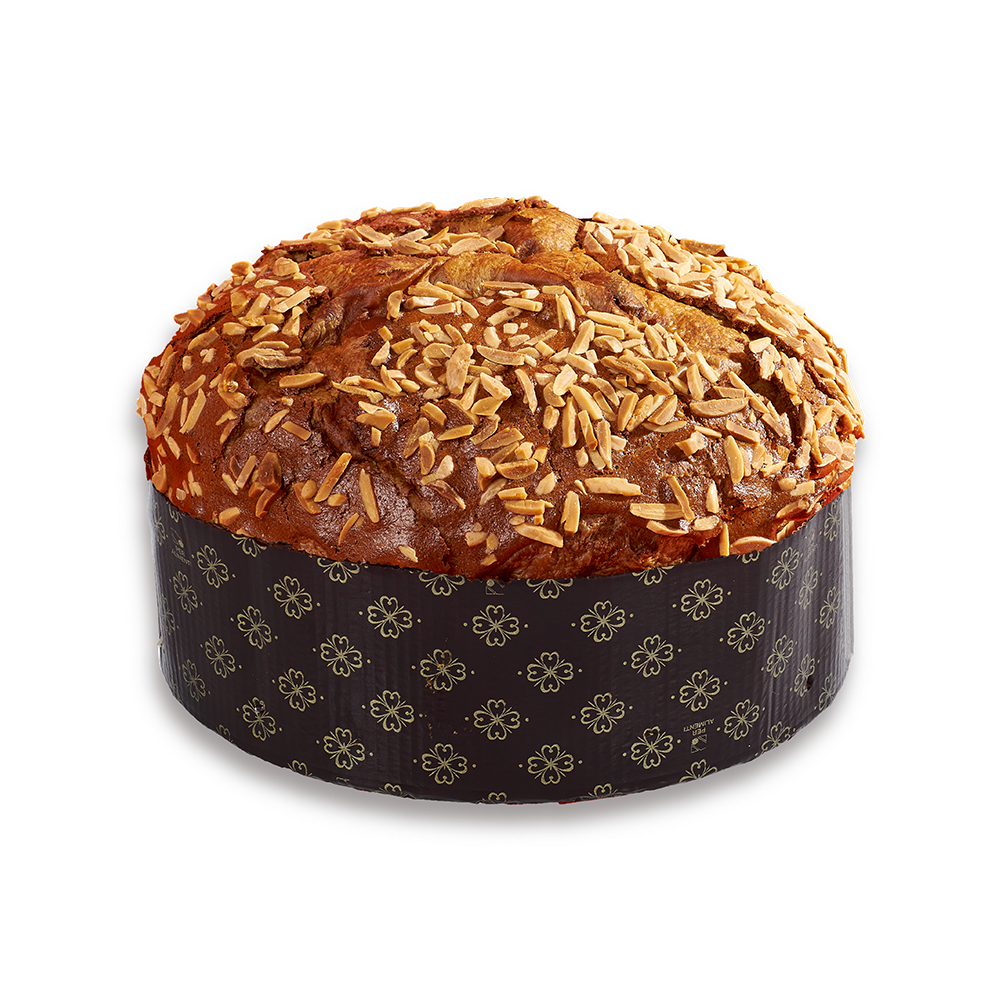 Farina di grano tenero tipo ”00”, Burro 19% (origine del latte: Paesi UE), Zucchero, Mele candite 12% (cubetti di mele, sciroppo di glucosio-fruttosio, zucchero, succo di limone concentrato, aromi), Uva sultanina (uva, olio di girasole), Tuorlo d’uovo sgusciato pastorizzato, da allevamenti a terra di origine: Italia, Acqua, Lievito naturale (contiene frumento), Mandorle, Albume d’uovo sgusciato, pastorizzato, da allevamenti a terra di origine: Italia, Miele di acacia (origine: Paesi UE o extra UE) , Vino Marsala, Pinoli, Mandorle di albicocca, Cannella, Estratti naturali di limoni, arance e vaniglia, Sale. Può contenere: Lattosio, Glutine, Uova, Arachidi, Frutta a guscio, Soia e derivati.
